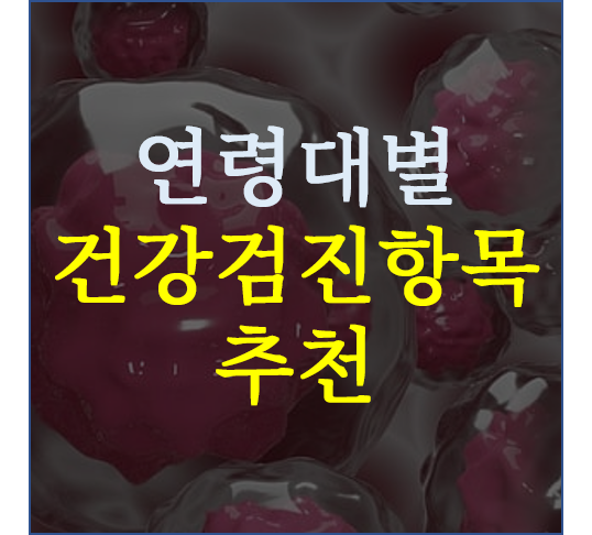 오늘은 20대부터 60대까지 연령대별 꼭 받아야 하는 건강검진 항목에 대해 소개해드리려 합니다. 특히 신체의 노화를 겪으며 발생 가능성이 높은 항목들이 다르기 때문에 꼼꼼히 살펴보고 받으셔야 합니다. 그러나 너무나도 많은 병원의 건강검진 항목 중 어떤 것을 선택해서 받아야 할까요? 연령대별로 집중하면 좋은 건강검진 항목에 대해 추천해 드리겠습니다.